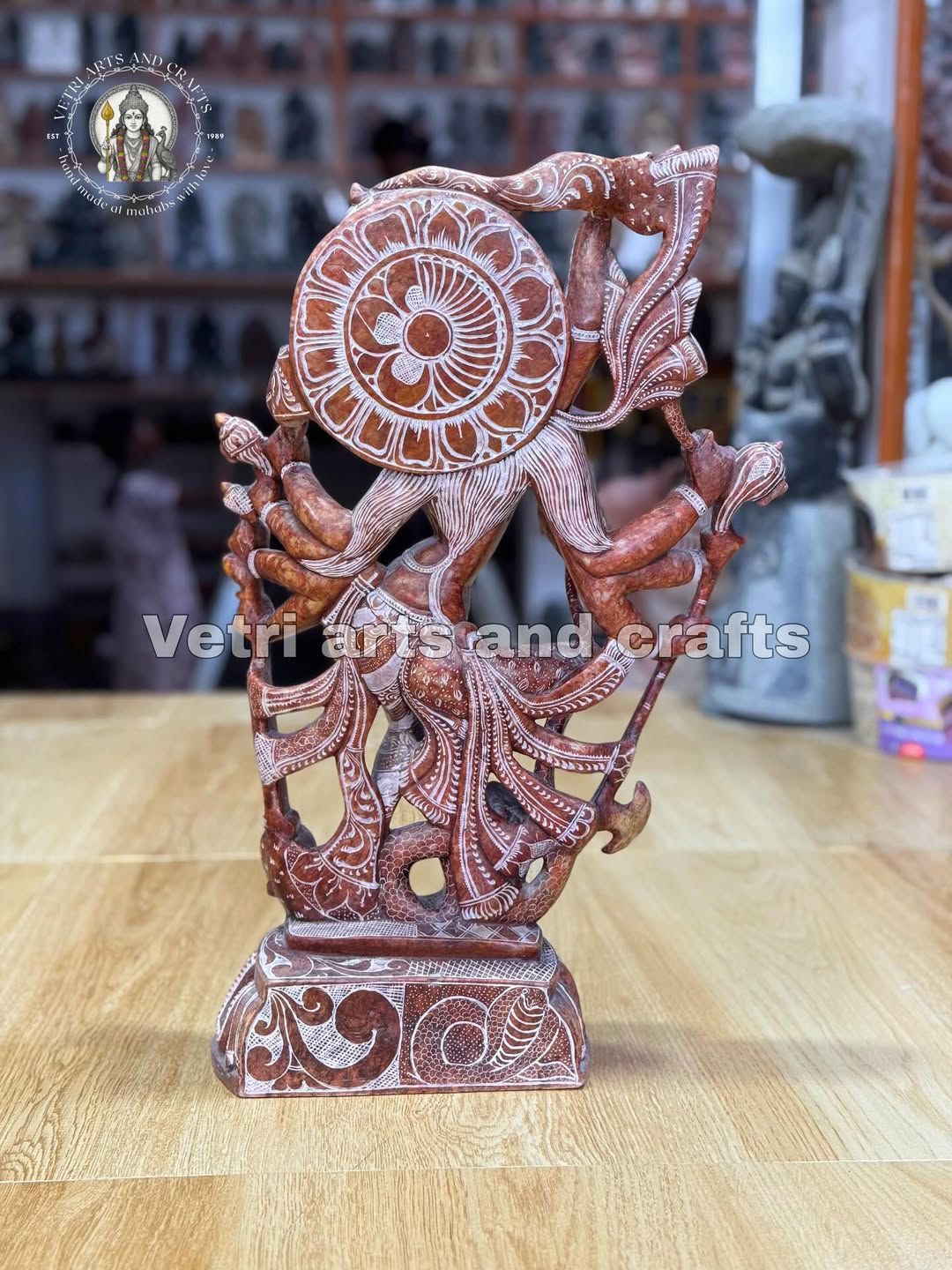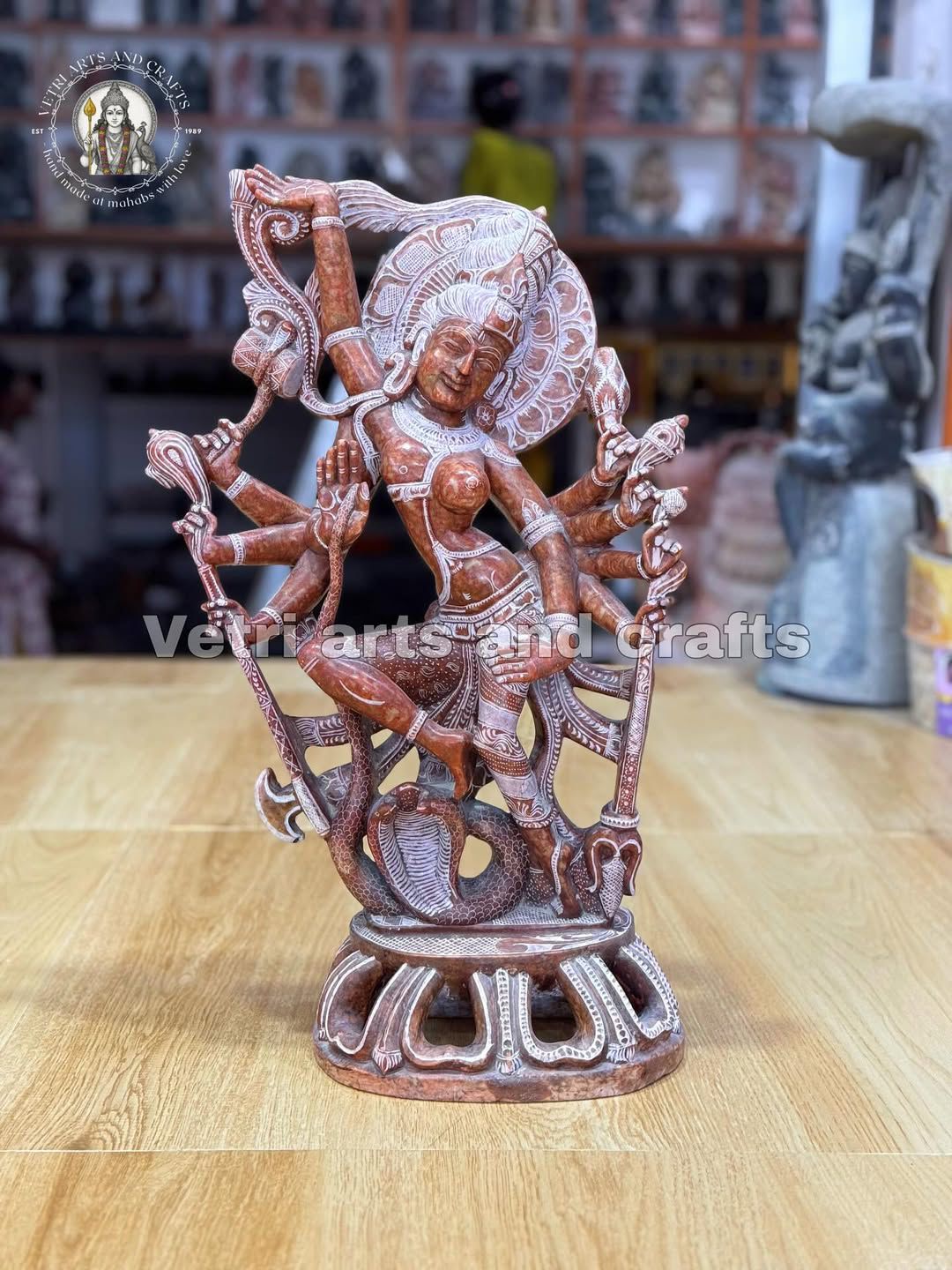 Hand-carved from premium natural red marble stone Depicts the divine union of Shiva and Shakti in Ardhanarishvara form Intricate detailing of ornaments attire and sacred expressions Smooth polished finish with natural marble texture Radiates spiritual balance harmony and divine presence Strong and durable designed for long-term devotional use