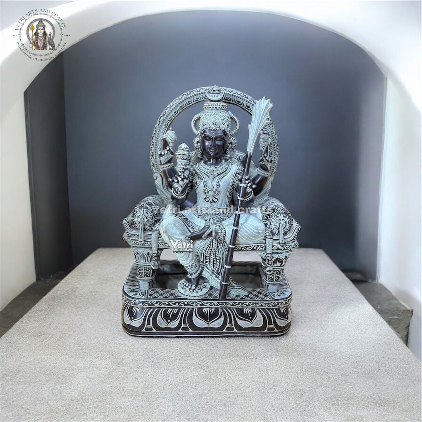 Hand-carved from premium green stone Intricate detailing on ornaments, crown, Simhasana, and posture Smooth, polished natural-stone finish Strong, solid sculpture designed for long-term devotional use