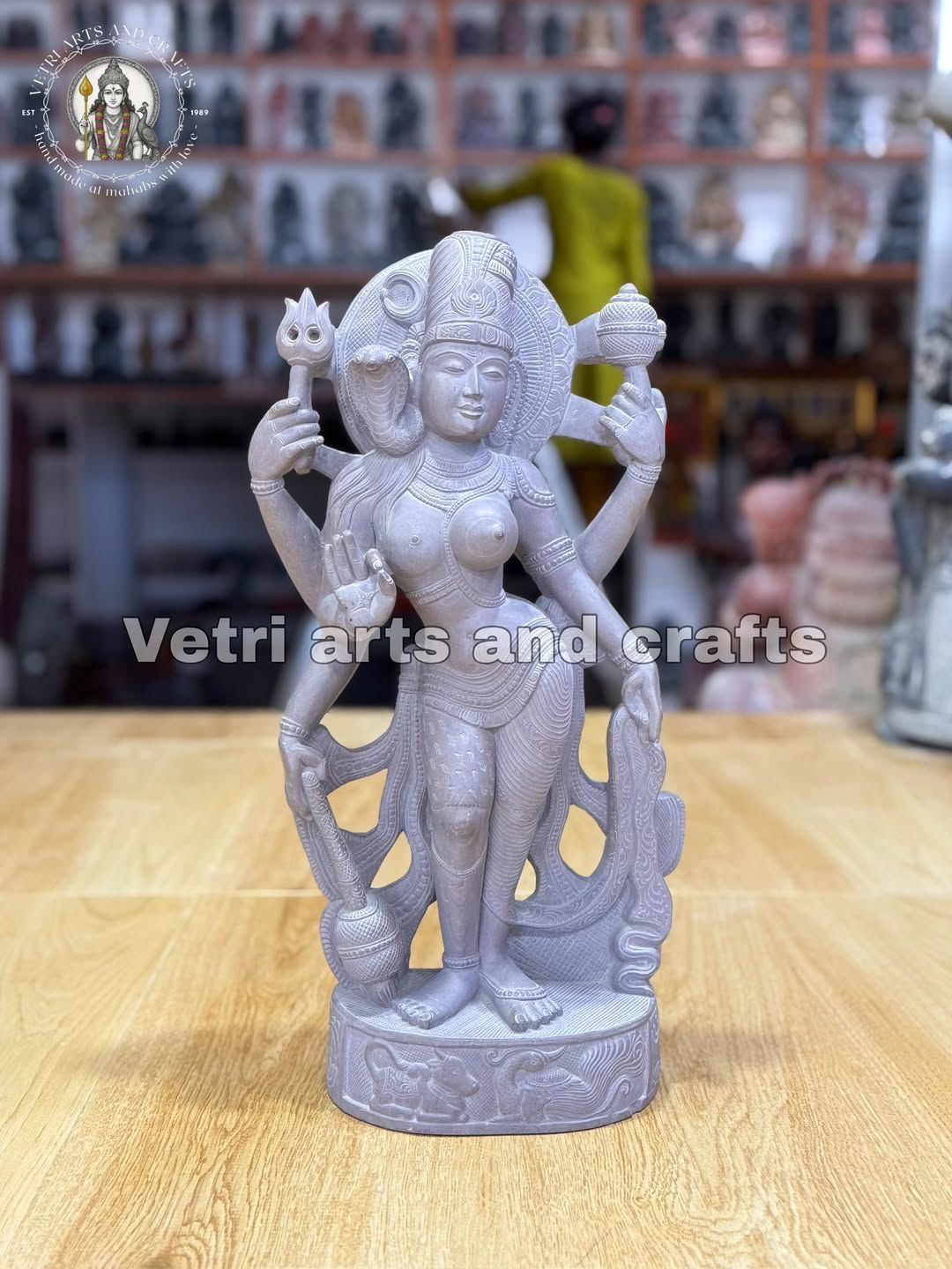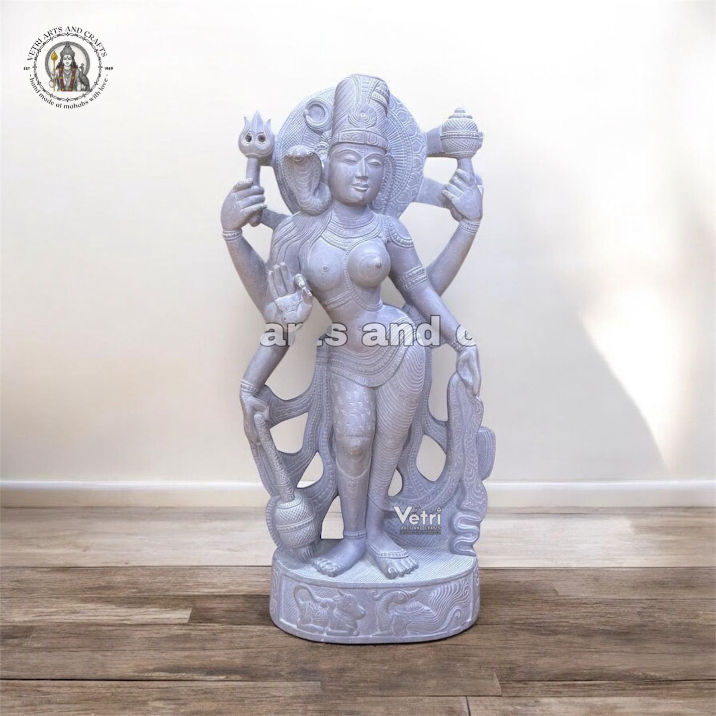 Hand-carved from premium natural stone Graceful standing posture representing divine union Intricate detailing of ornaments, attire, and divine expressions Smooth polished finish with natural stone texture Durable and designed for long-term devotional use